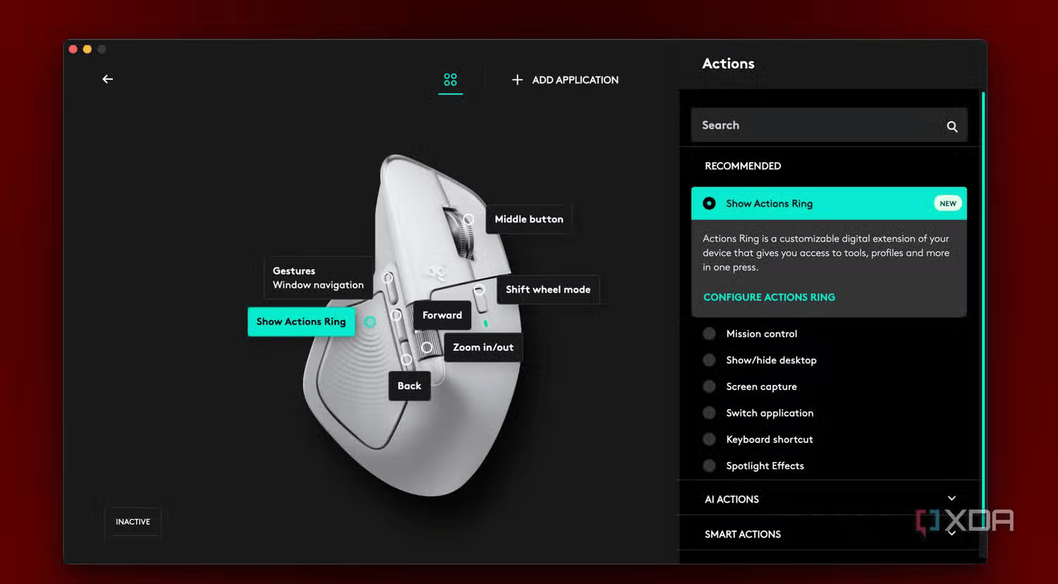 The Actions Ring, nestled into the mouse’s right wing, is easily the highlight of this update. Press it, and a circular overlay of shortcuts appears, like a minimalist command hub. It’s fast, responsive, and dynamic, open “Explore AI,” for instance, and you’ll reveal a set of AI tools ready to use. You can even map system functions, like adjusting your volume, directly to the Ring. It’s productivity reimagined, and surprisingly intuitive.